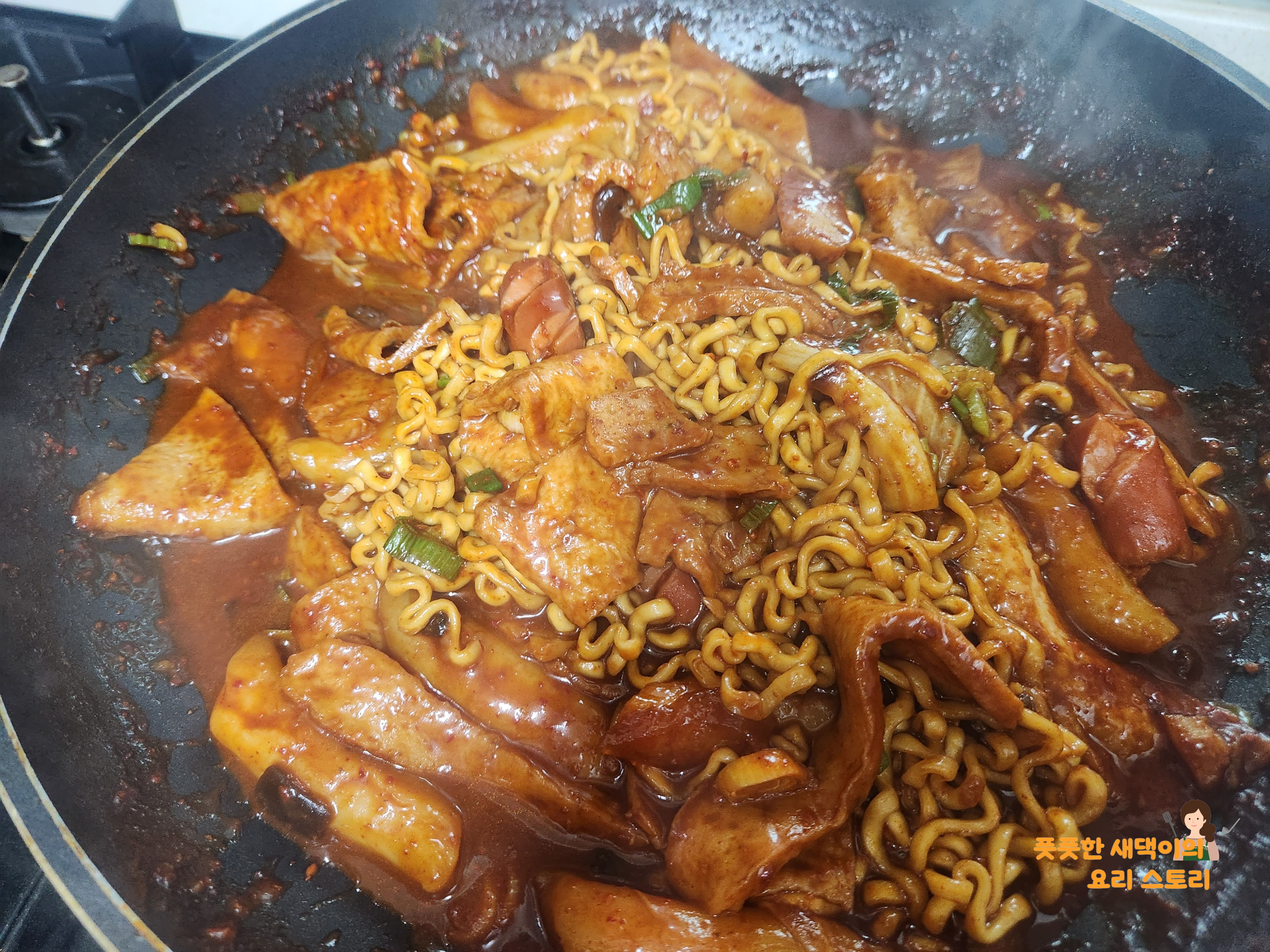 남은 엽기떡볶이에 짜장라면(짜파게티)을 넣으면 엽파게티라고 하더라고요?😅